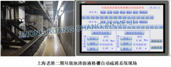 该系统用智能疏通系统代替传统的人工定期清理垃圾池渗沥液收集格栅孔,疏通过程实现一键控制,疏通过程安全、可靠、自动化程度高。疏通后的渗沥液收集格栅能够满足垃圾池渗沥液渗沥需求,实现可靠、高效渗沥工作。