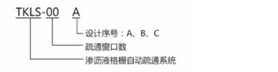 例如:首次设计的18个疏通窗口的渗沥液格栅自动疏通系统表示为TKLS-18A。